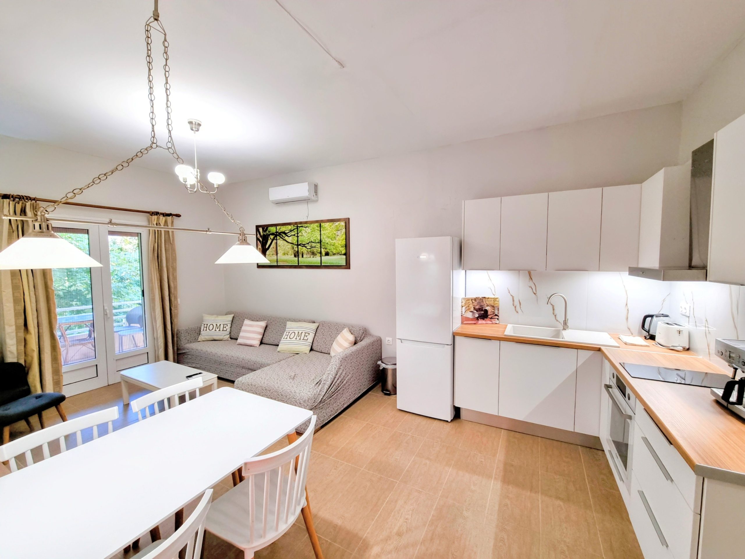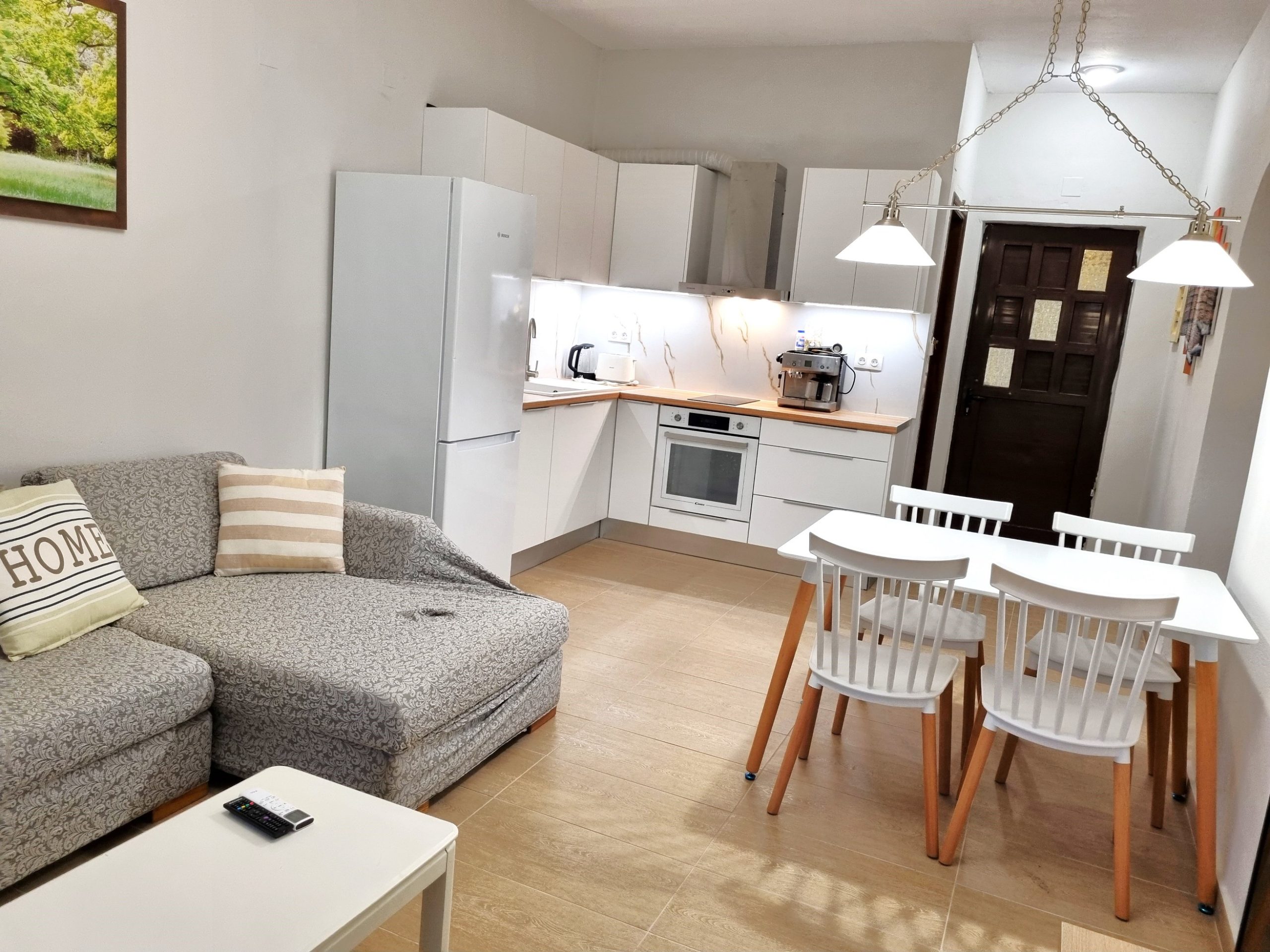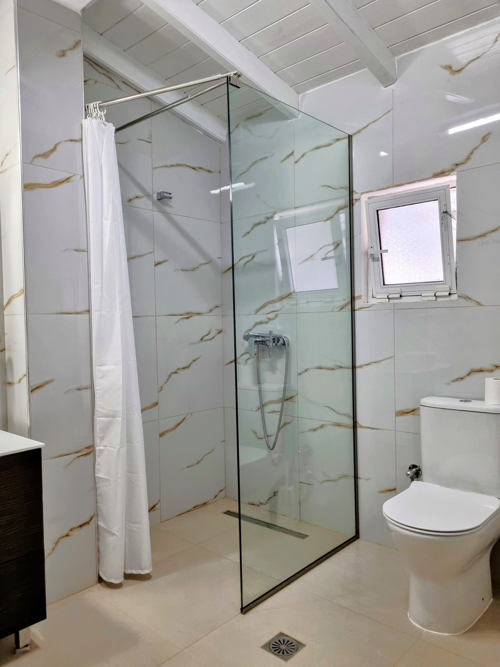 Referring to the kitchen area, there is a spacious kitchen with cooking supplies as well as an oven, ceramic cooking hobs, fridge / freezer, coffee machine for espresso and filter coffee and supplementary stuff. Dining area, which will offer you the pleasure of sharing a luscious meal with your beloved ones. On the other side, there is a modern bathroom with shower, as well as all the essentials.